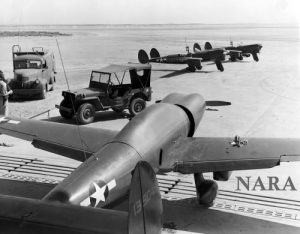 L’USAAF ha considerato all’inizio l’impiego di droni contro i bombardieri impiegando, in un test nel 1943, un aerobersaglio PQ-12A con testata di 227 kg, radioguidato da un UC-98 Bobcat contro un drone bersaglio PQ-8. La testata detonava con comando a distanza. Ha dimostrato il concetto ma era troppo lento.